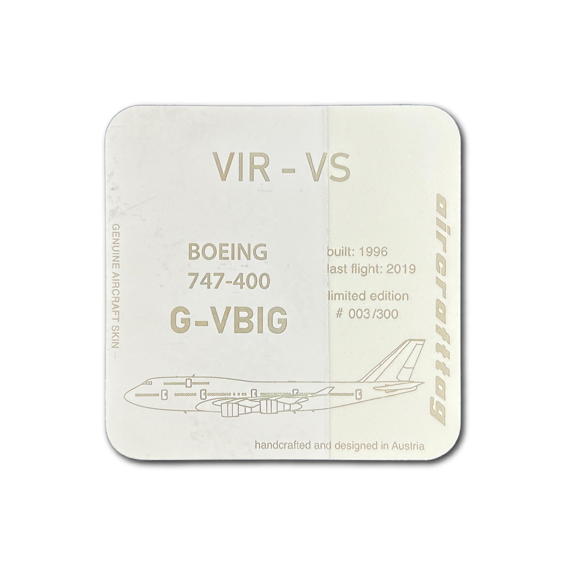 Our glass coasters of original aircraft skin have a size of 9,5 x 9,5 cm.