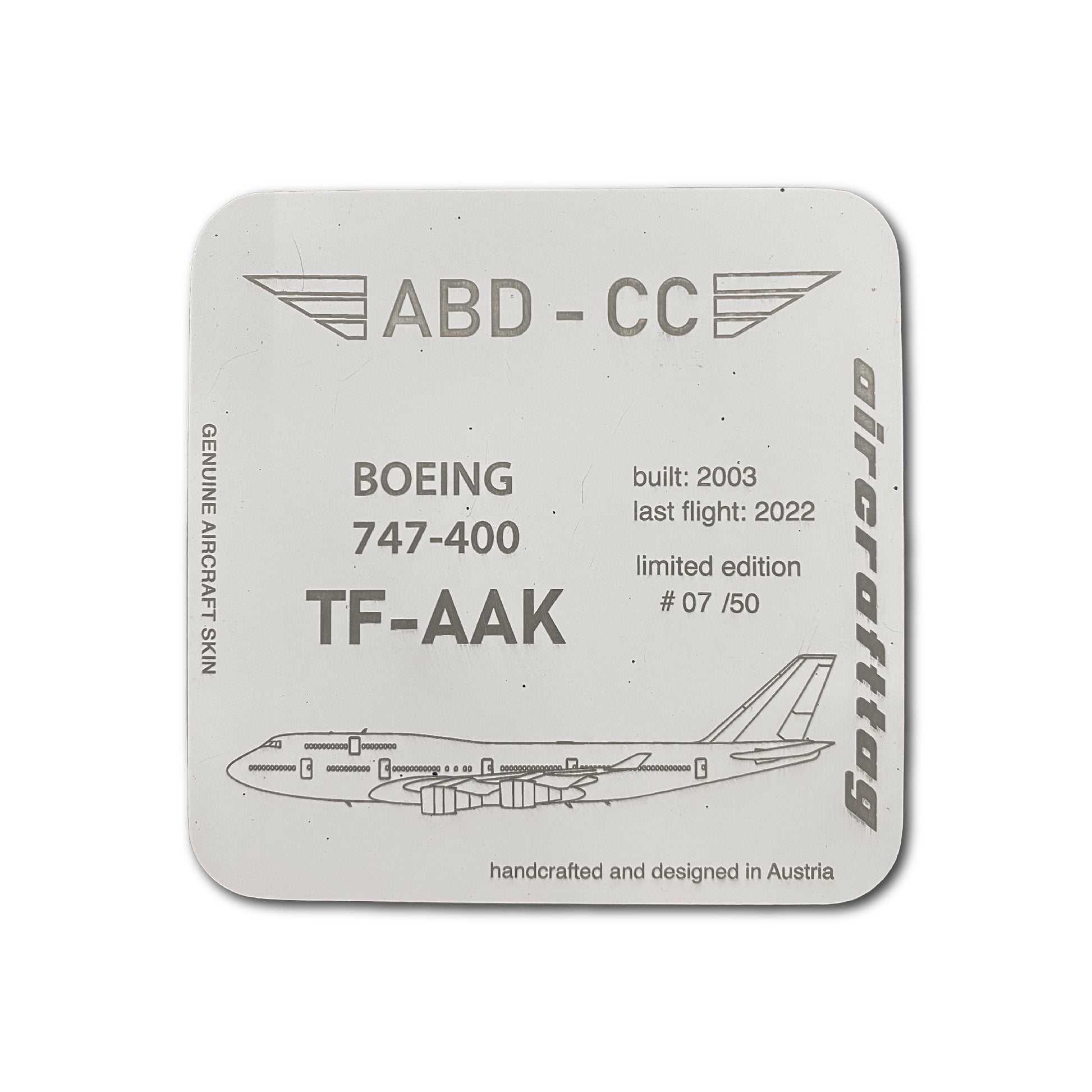 Our aircrafttag coasters have a size of 9,5cm x 9,5 cm and an "anti skid" backside.