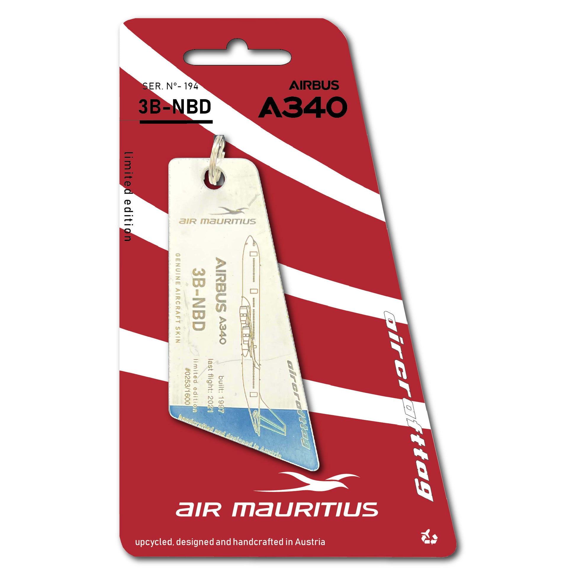 Nous ne pouvions pas manquer l'opportunité d'ajouter cet A340-300 d'Air Mauritius à notre collection d'aircrafttags, disponibles dans toutes les couleurs du drapeau et du logo.