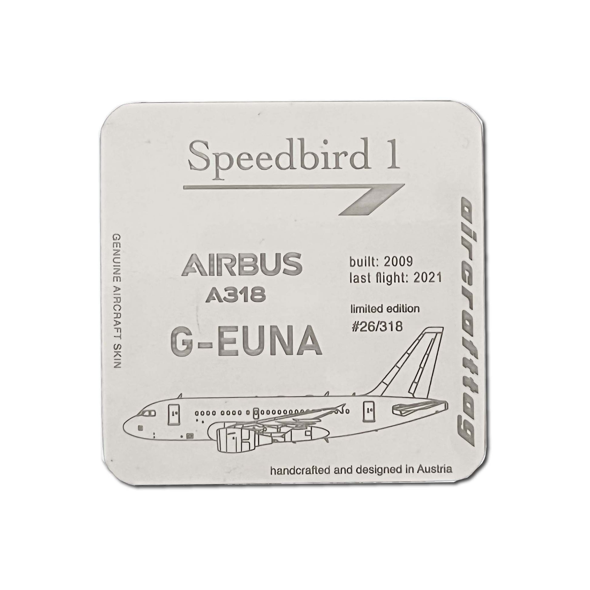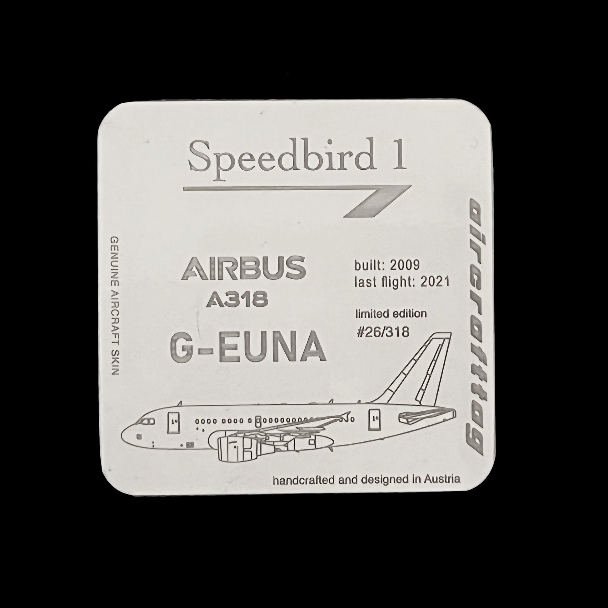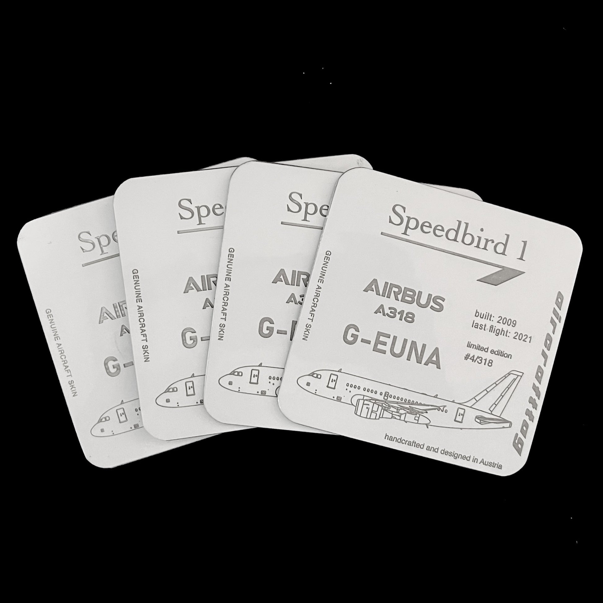 Nos sous-verres "aircrafttag" ont une taille de 9,5 cm x 9,5 cm et un dos "anti-dérapant". Nous avons limité cette édition à 318 pièces.