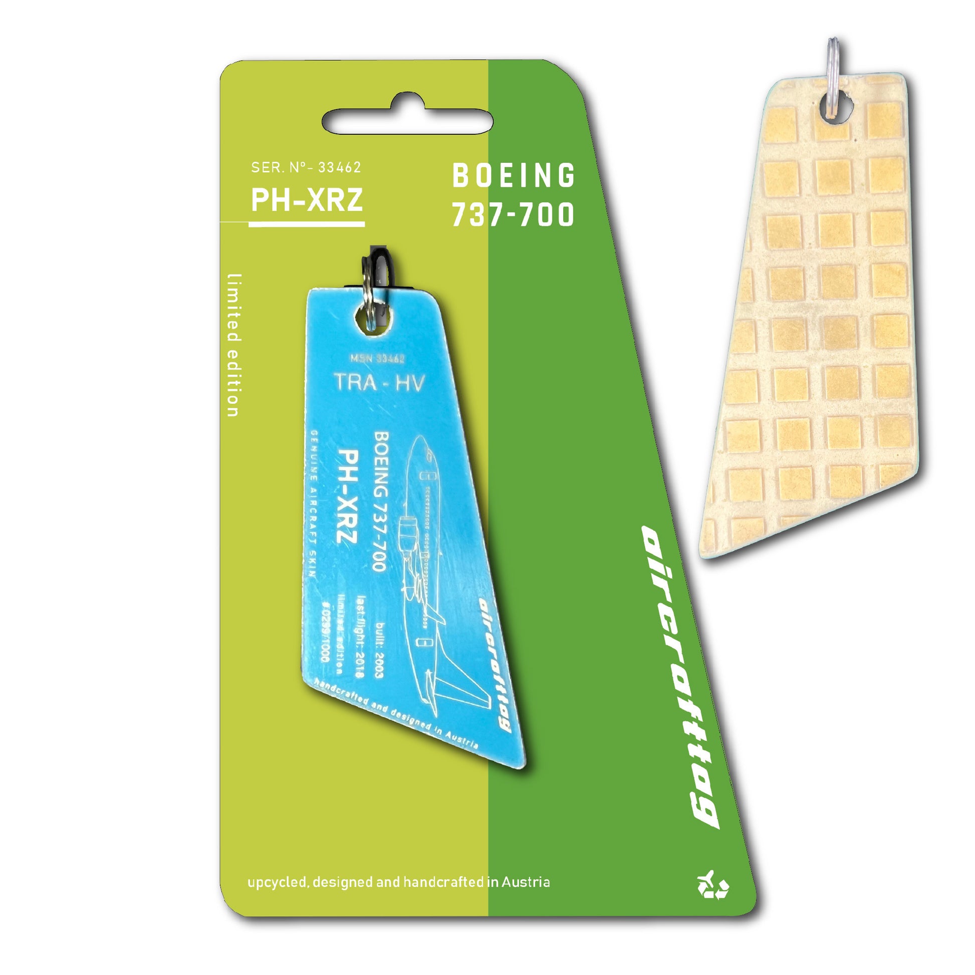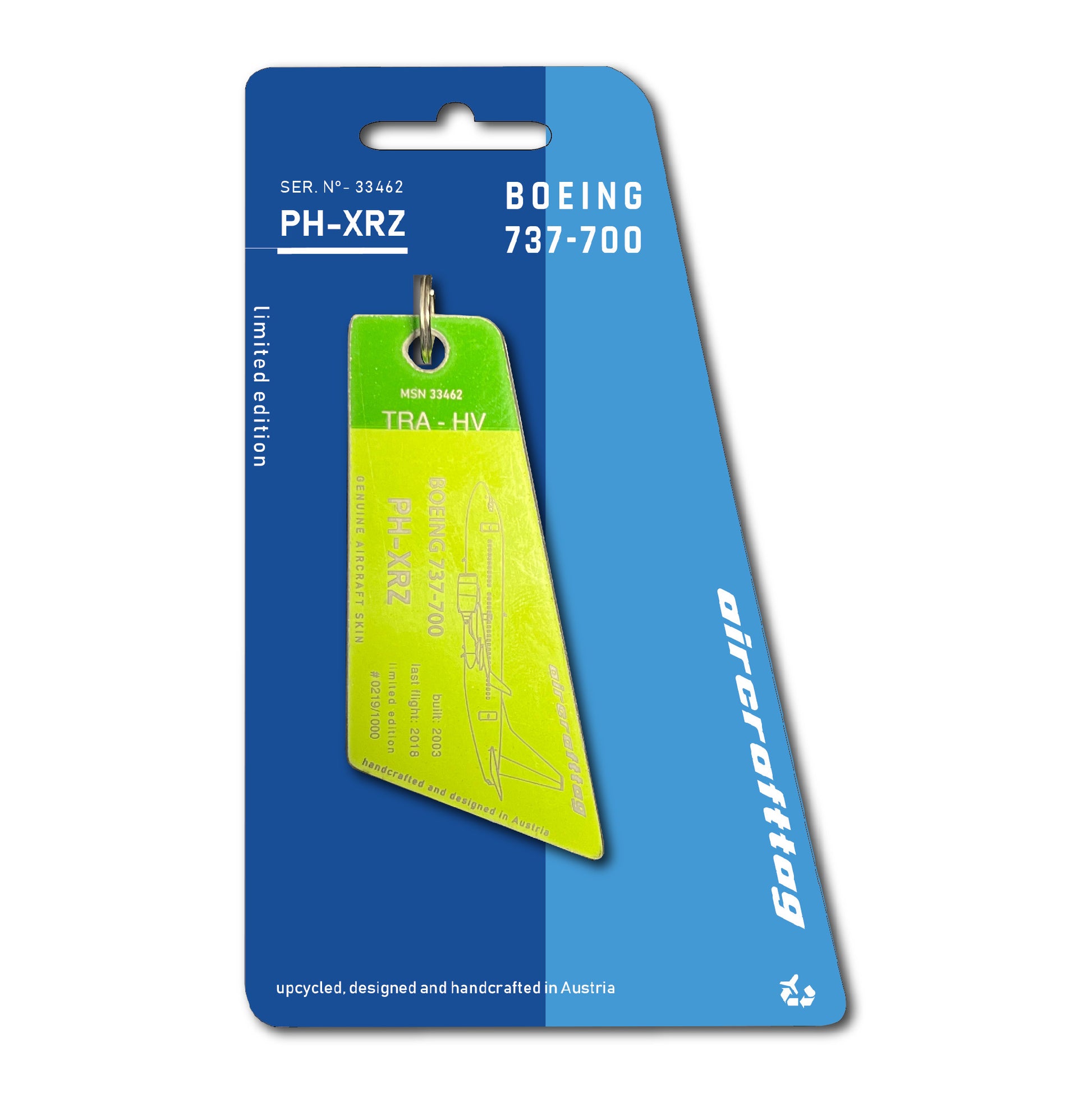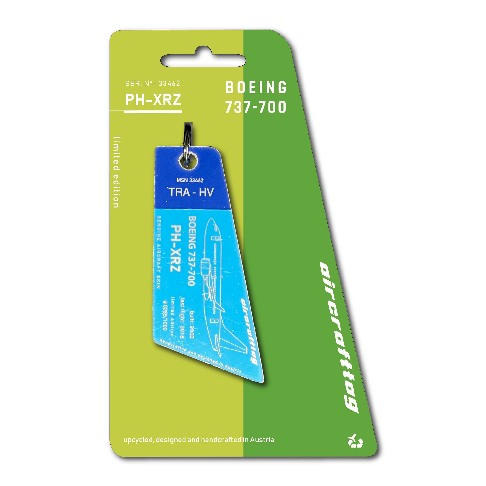 After 15 years in service Ph-XRZ was stored and finally scrapped. Luckily we could preserve this beautiful airplane with this unique livery as aircrafttag.